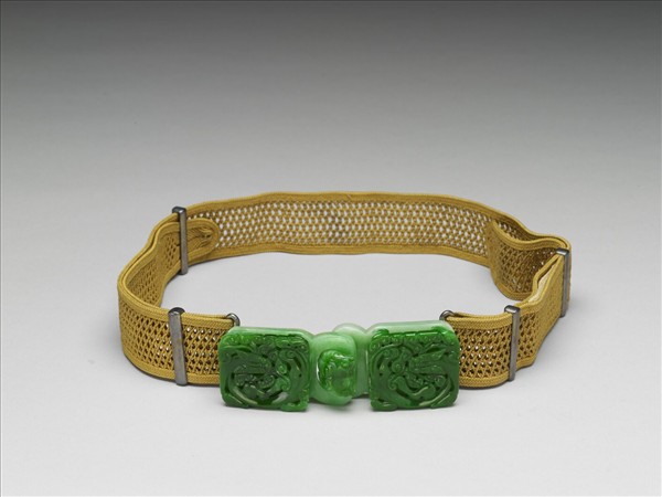 翠玉鏤雕螭紋帶扣涼帶