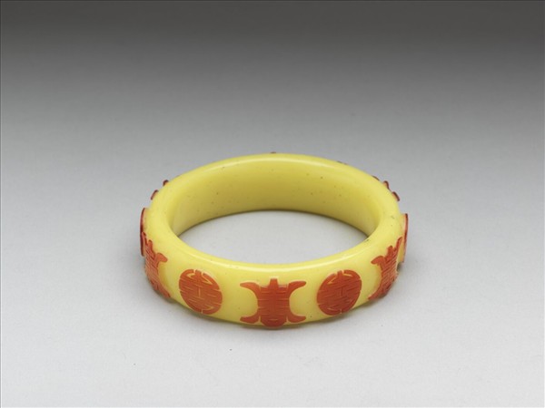 黃套紅壽字玻璃鐲