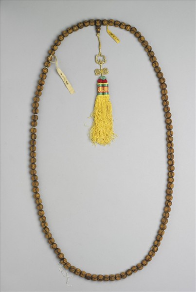 茄楠木嵌金團壽念珠