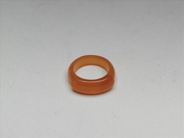 馬鞍形戒指,通體由瑪瑙雕琢而成,戒面為長弧形凸出戒環。瑪瑙色澤光亮,質地柔潤。