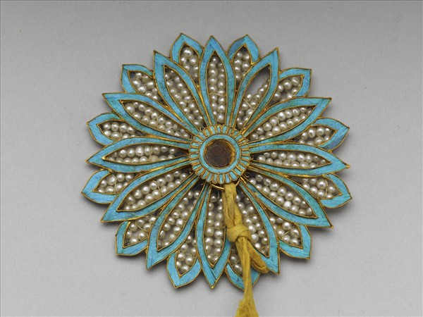 結子,雙重瓣菱花形,瓣緣點翠,瓣內穿飾米珠。