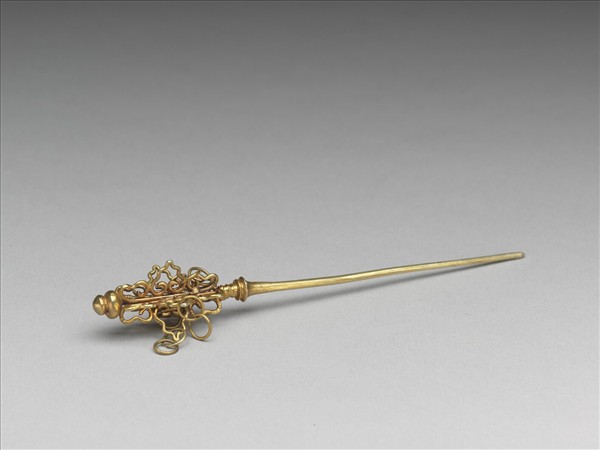 金簪,器型似丈,簪首為連環,鋌素直。此器與故雜4710為一對。
