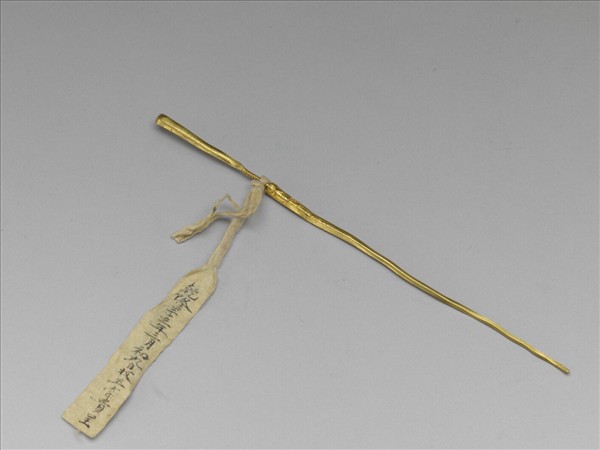 耳挖簪,器柄似丈,微帶曲度,其上鏨刻卷葉紋。