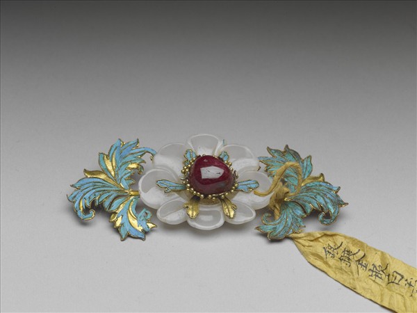 銀鍍金嵌玉茶花簪