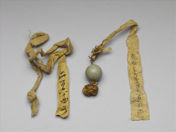 松石珠一粒,色灰。