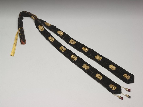 嵌金八寶黑絨帽飾飄帶