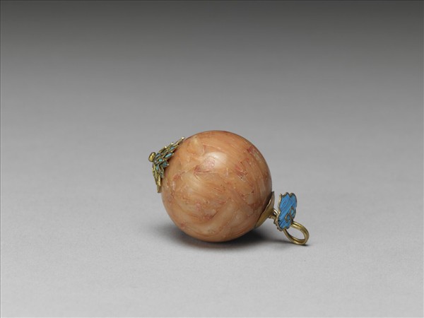 此為珊瑚鈕子,頂為點翠如意掛勾紋,底為三層藍色點翠花瓣紋,顏色鮮艷,作工精緻。