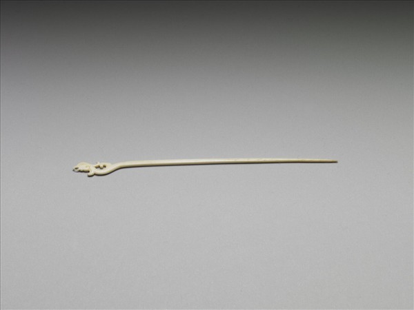 此為象牙製髮簪,簪首雕鳳,尾尖,素挺。