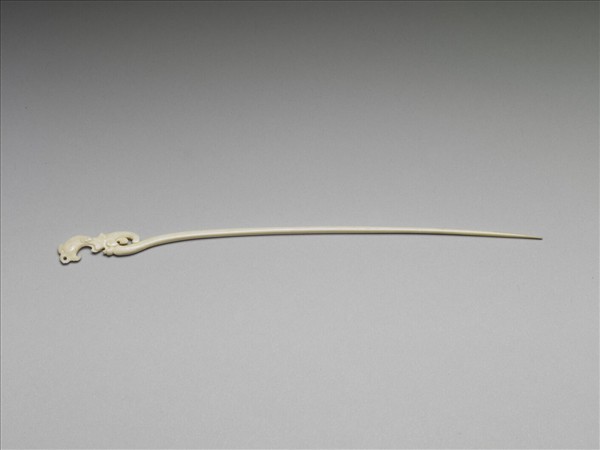 此為象牙製髮簪,簪首雕鳳,尾尖,素挺。