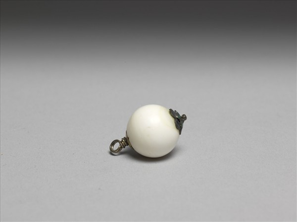 白色珊瑚珠,底為雙層花瓣紋,均點翠,銀鈕環。