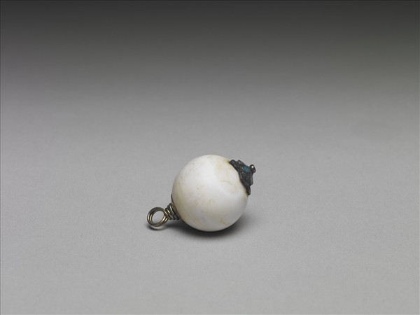 白色硨磲鈕子,底為雙層花瓣紋,均點翠,銀鈕環。
