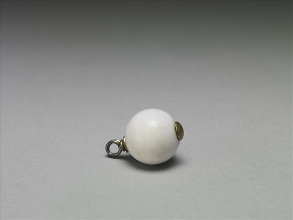 白色硨磲鈕子,底為金圓狀,銀鈕環。