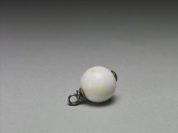 白色硨磲鈕子,底為金圓狀,銀鈕環。