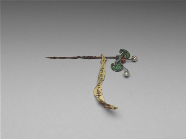 珊瑚松石蝠首鐵腳簪