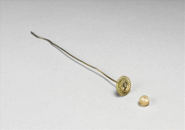 銀鍍金鑲假珠花形簪
