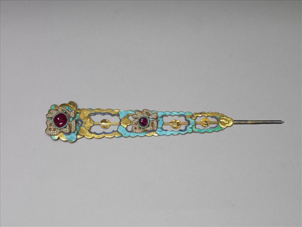 銀鍍金五福釵簪