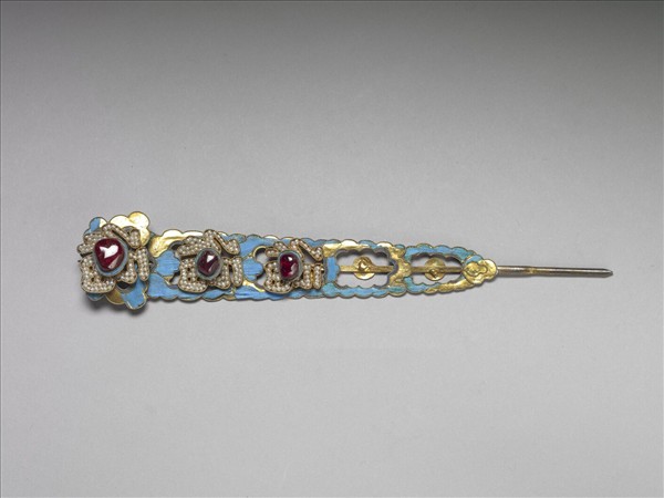 銀鍍金五福釵簪