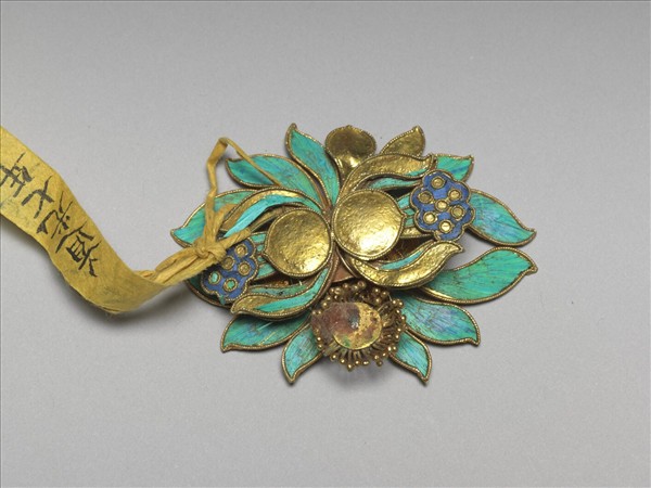 銀鍍金點翠蓮花結子