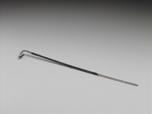 素挺,銀鍍金,挺首作勾形,挺身纏繞黑色絲線。