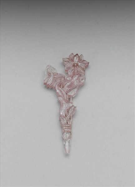 簪首,以碧璽雕琢而成一束荷花鳥紋樣式,色澤晶瑩透亮,雕工精巧細緻。故雜6900-故雜6903同儲於一包。