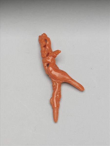 簪首,以珊瑚雕琢成花鳥紋樣飾,雕工精巧細緻。