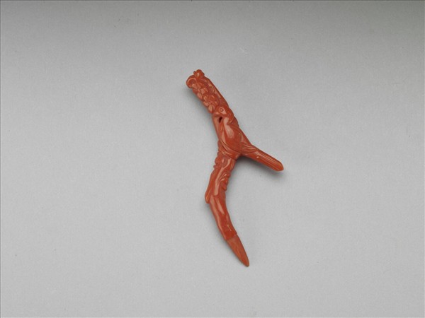 簪首,以珊瑚雕琢成花鳥紋樣飾,雕工精巧細緻。故雜6904~故雜6919共十六件同儲於一包。