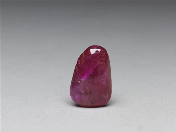 紅色寶石,圓角錐形,表面打磨,光素無紋。