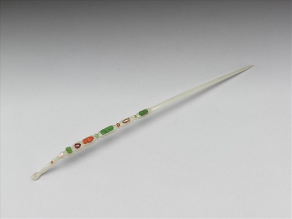 白玉飾寶石翠玉耳挖簪