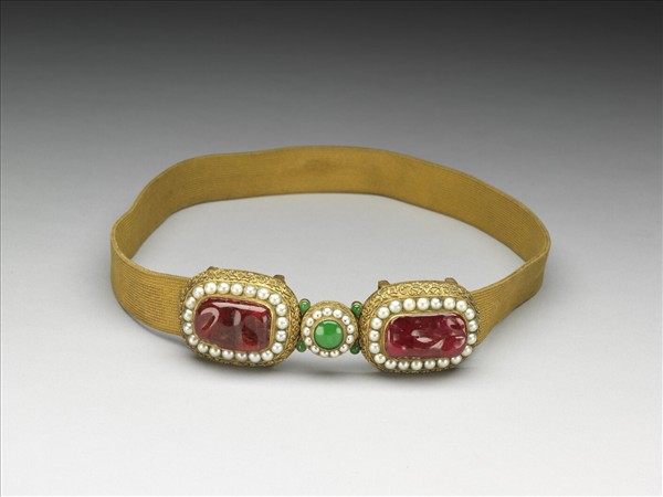 銅鍍金鑲珠寶玉石帶扣涼帶