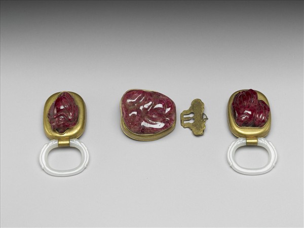 銅鍍金鑲紅色寶石帶扣與帶板