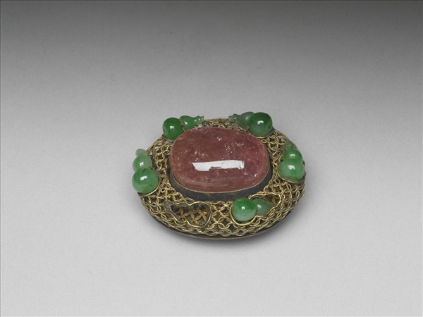 銀鍍金嵌碧璽翠玉葫蘆帶扣