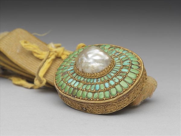 銀鍍金嵌綠松石珍珠帶扣涼帶