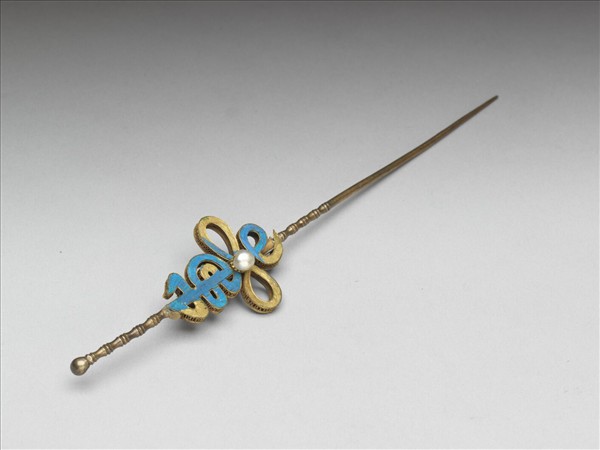 點翠嵌珠壽字耳挖簪