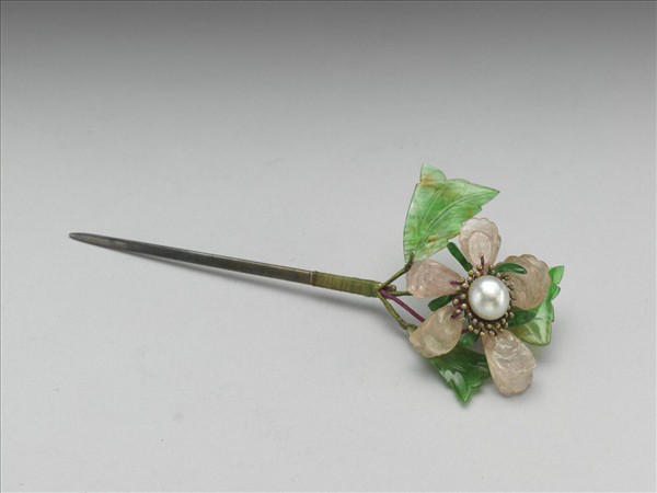 銀鍍金碧璽珠翠花簪