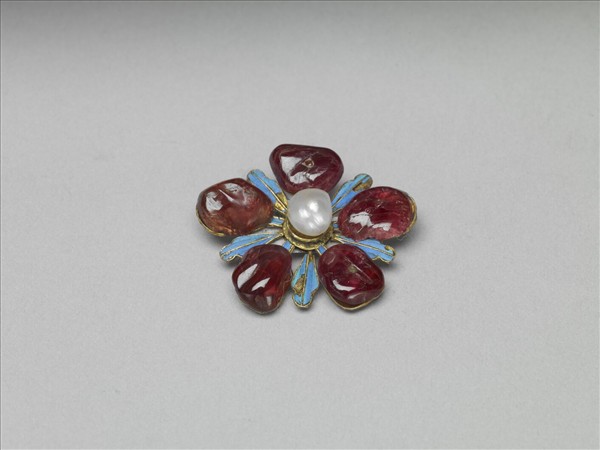 點翠嵌寶石花形飾件
