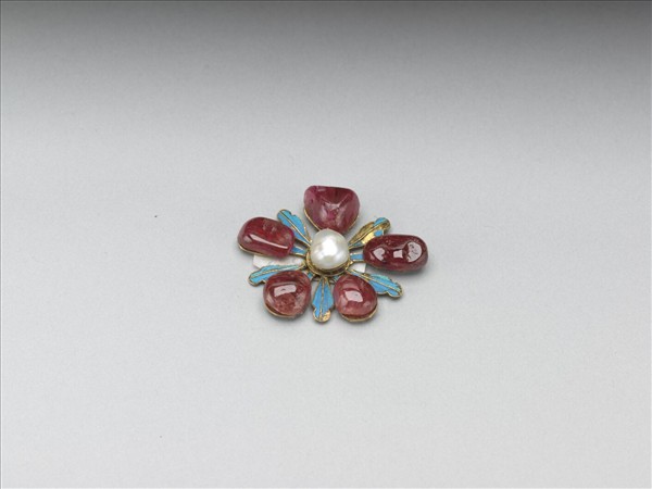 點翠嵌寶石花形飾件