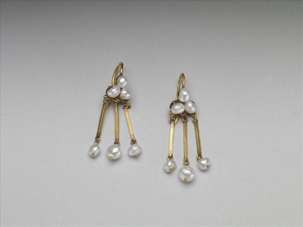耳墜。環面嵌小珍珠三,墜部三行金片,各綴小珍珠一。