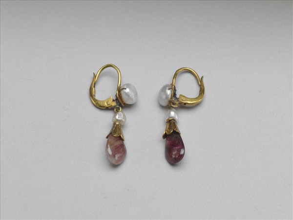 金嵌珍珠碧璽耳墜(一對)
