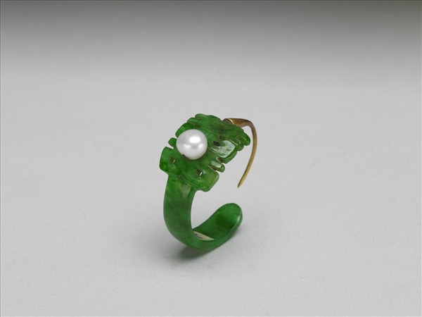 翠玉嵌珠囍字耳墜