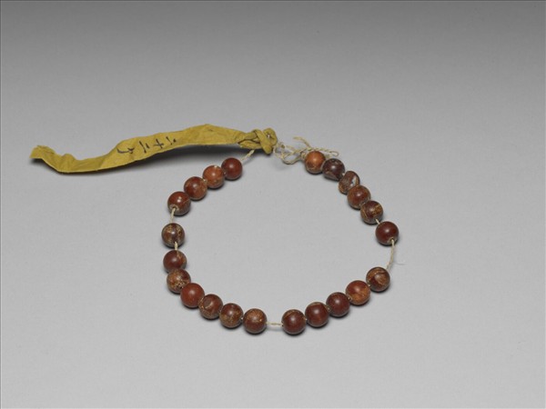 蜜蠟數珠一串計二十二粒,色雜不均,無紋飾。