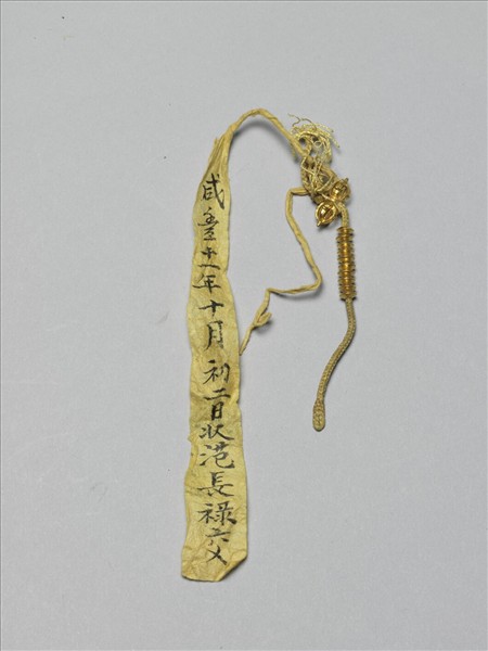 記捻常串於朝珠兩側,此金記捻,十顆一串及綴一金杵。
