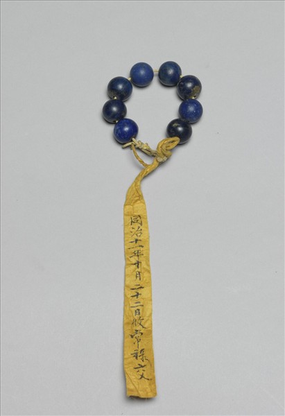 故雜7802~故雜7809八顆青金石珠同繫一串。