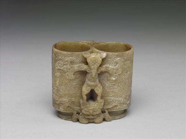 玉異獸夔龍紋雙管瓶