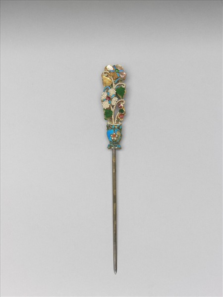 鍍金嵌珠寶瓶花耳挖簪
