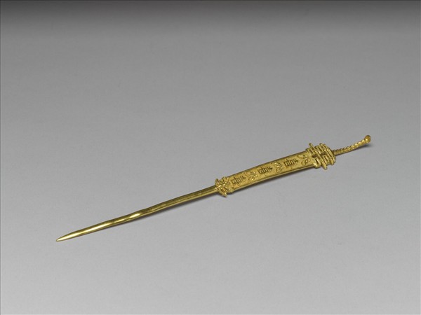 首以粟米金珠為地,相間浮雕囍字與蝴蝶紋,前飾鏤空囍字,頂連一耳挖,飾朵花紋。