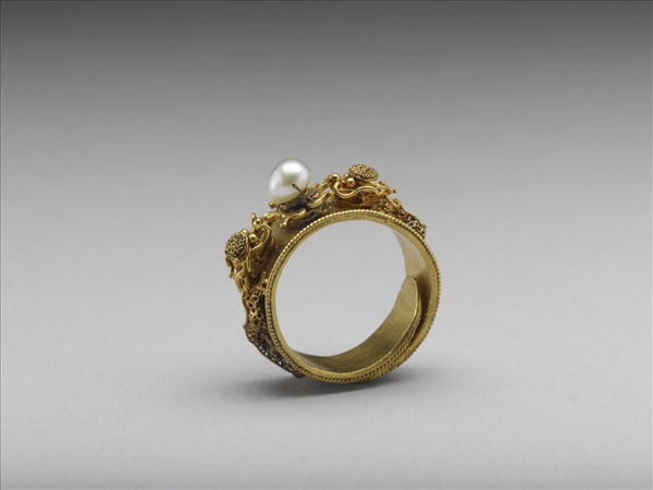 金嵌珠龍紋戒指