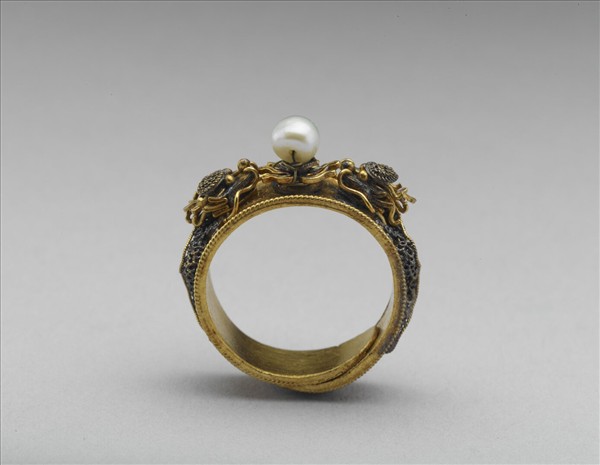 金嵌珠龍紋戒指