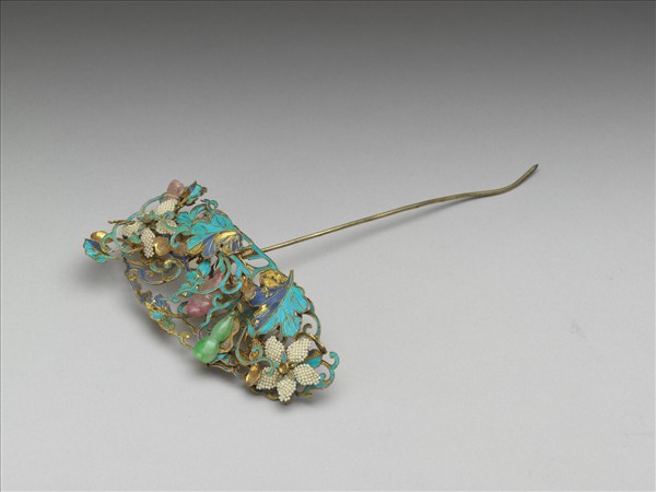 鍍金點翠嵌珠寶花卉葫蘆簪