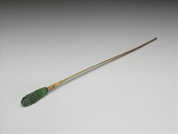 嵌翠玉福壽囍字簪