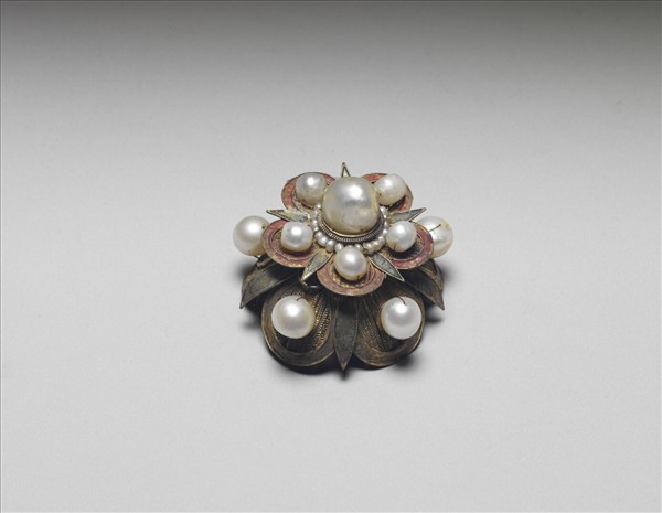 帽正是固定在帽子正前方的飾物,因其具有定位的功能,分辨前後,對準鼻心,故稱帽正。清代的帽正大多與瓜皮帽密切相關,帽正的質料取決於社會地位及經濟條件,講究的可以用珍珠、玉、瑪瑙、紅色尖晶石、珊瑚、貓眼石等名貴的寶石,一般人家也可以用燒藍、料器等。此件是以金屬纍絲掐製成圓弧形,中央嵌寶石。